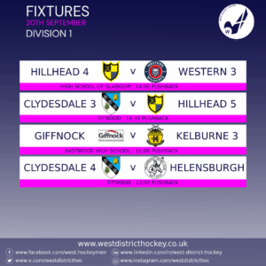 The pick of the division one fixtures this week see’s Glasgow rivals Hillhead 4th XI play Western 3rd XI. It’s Hillheads opening match of the season whilst Western had an impressive 5-0 win last week. Clydesdale 3rd XI shared the points with Giffnock last week, they will be hoping to go one better against newly promoted Hillhead 5th XI this weekend. Kelburne 3rd XI travel to Eastwood High School as they face Giffnock, whilst the other match sees Clydesdale 4th XI host Helensburgh at Titwood.