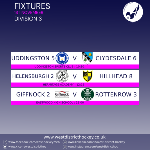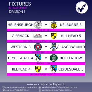 Western 3rd XI will be keen to continue their unbeaten start to the season, as they host Glasgow University 3rd XI. It could be a goal-fest with Western already having scored twenty-five in four, whilst Glasgow Univeristy have conceded twenty in three. Rottenrow will be looking to continue their good form too, as they come up against winless Clydesdale 4th XI. The two sides meet at Titiwood at 12:00. A close game is expected at Old Anniesland with Hillhead 4th XI hosting Clydesdale 3rd XI. Elsewhere, Helensburgh welcome Kelburne 3rd XI to Hermitage Academy, and Hillhead 5th XI look to get their first points of the season of the season against Giffnock.