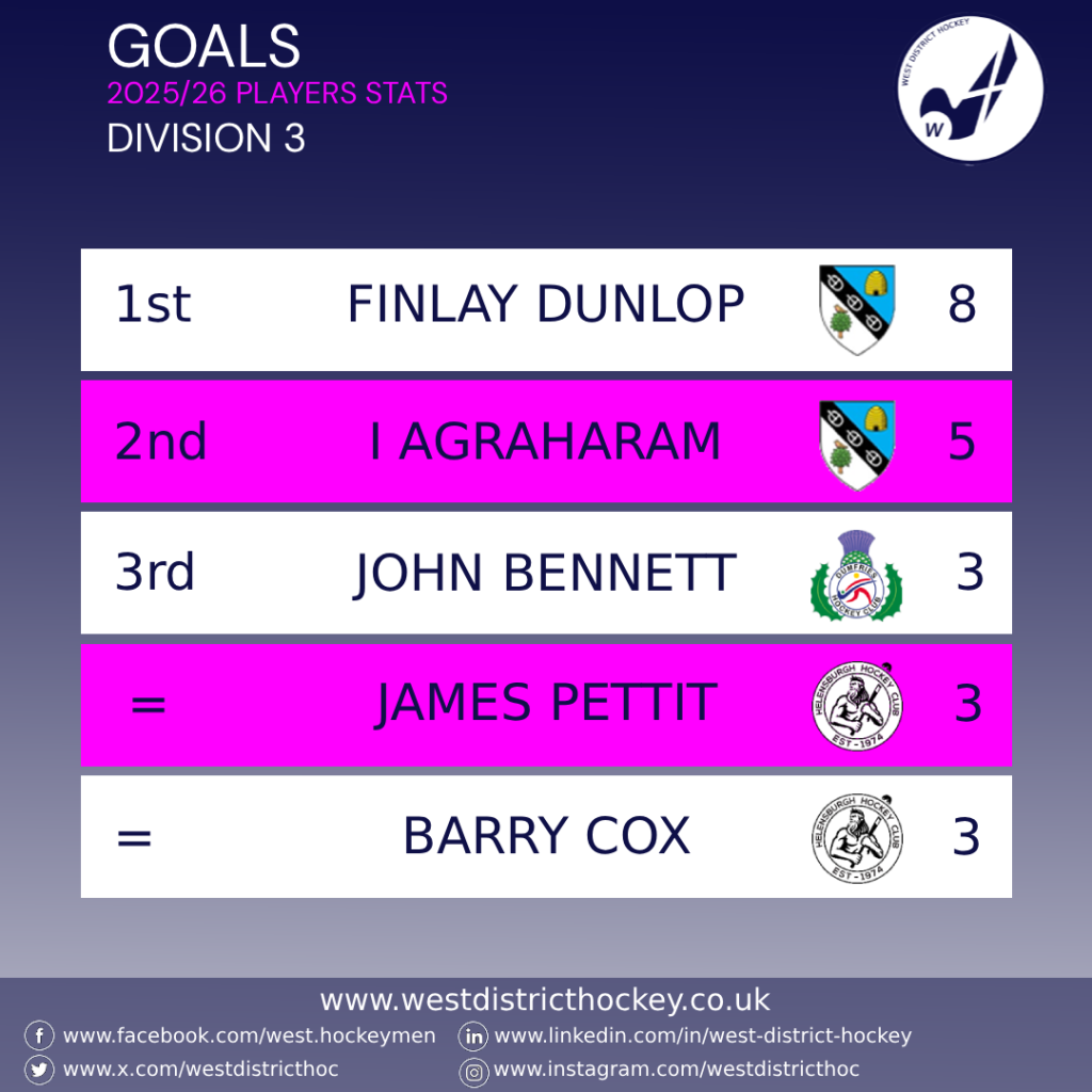 All the information you need for the West District Hockey Men’s 3rd Division.