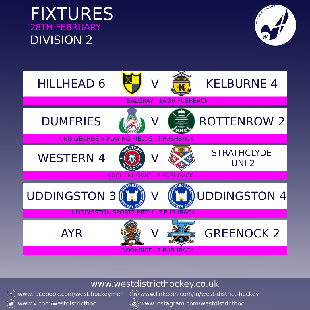 Read MoreAnother full programme of fixtures awaits in the West District…