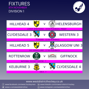 The big match in division one sees unbeaten Western 3rd XI take on challengers Clydesdale 3rd XI. The sides sit first and third respectively and will both be keen on three points in this massive match. Clydesdale will need to be at their best, however, as Western remain unbeaten this season and don’t look like slowing down any time soon. The other big match see’s Rottenrow travel to Giffnock. The two sides are in second and fourth, however they are tied on ten points, with only goal difference separating them. The bottom four all face each other as well, with winless Kelburne 3rd XI hosting Clydesdale 4th XI and Glasgow University 3rd XI going to Hillhead 5th XI. The other match see’s Helensburgh travel to Hillhead 4th XI on Friday night.